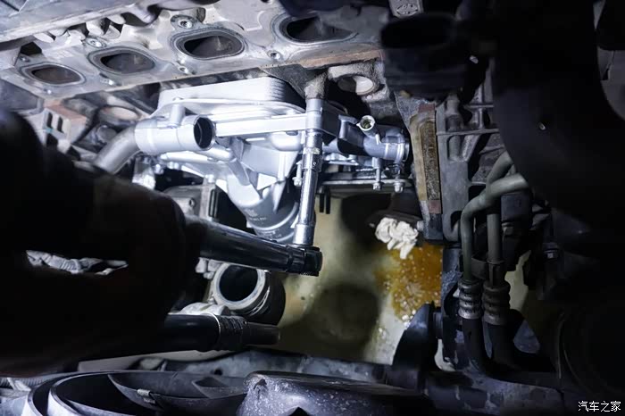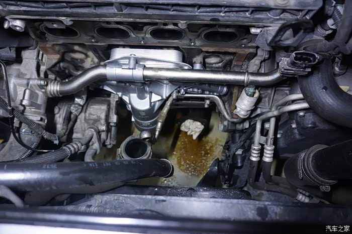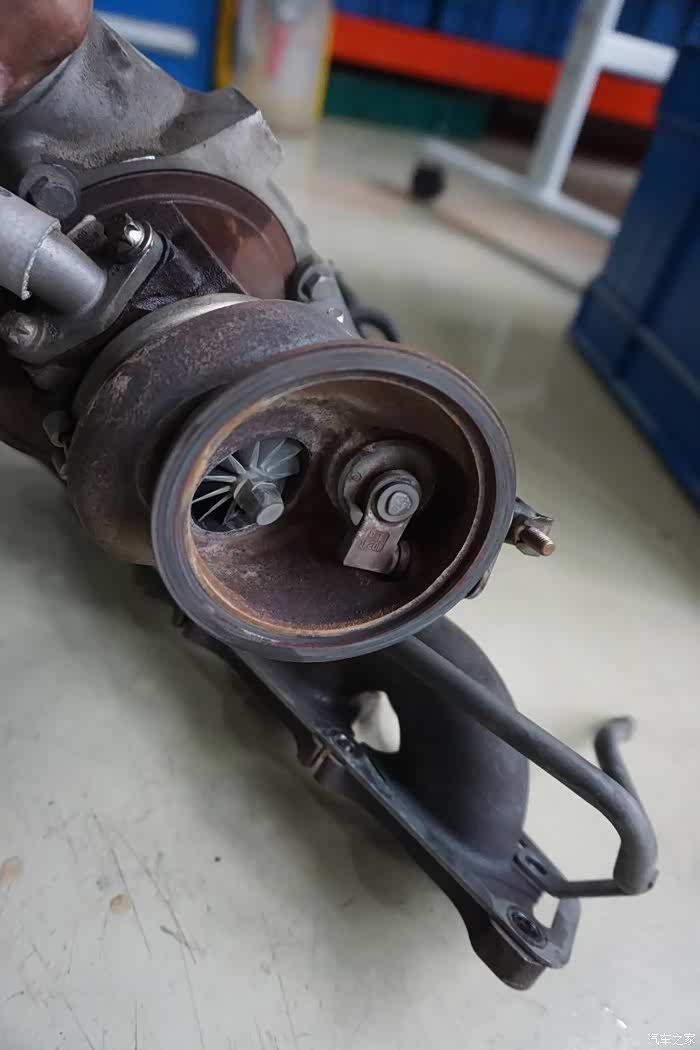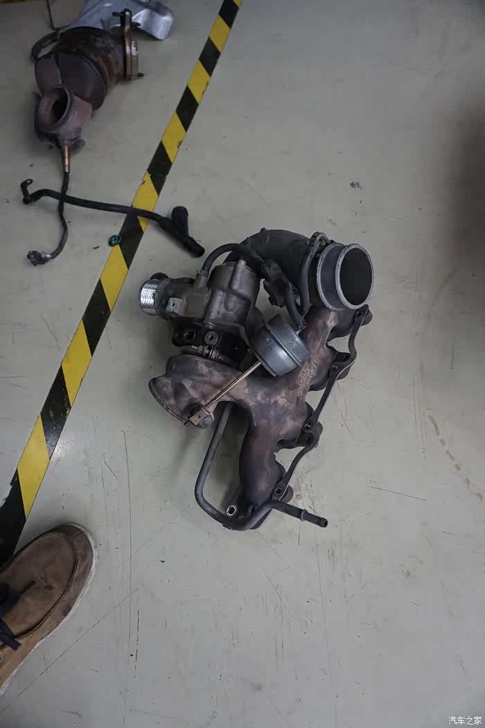 废了些许时间拆下排气岐管及涡轮增压器总成附件。空间局促,费劲周折!还做了不少专用工具!