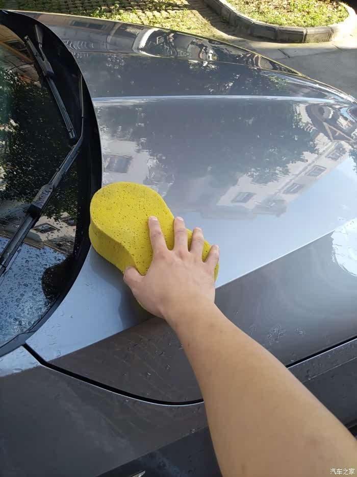 洗车海绵给爱车搓洗。