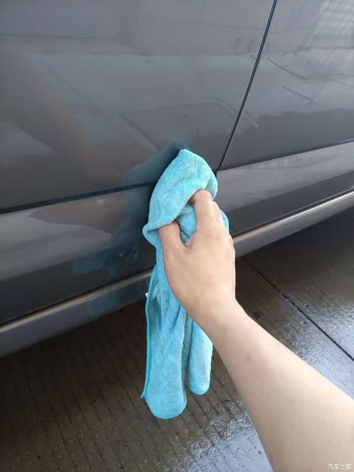 洗完车后用半湿的毛巾把车身的水擦干,不要留下水渍。