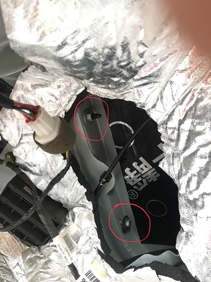撕下之前贴的隔音,可以看到这两颗螺丝依次拆下。