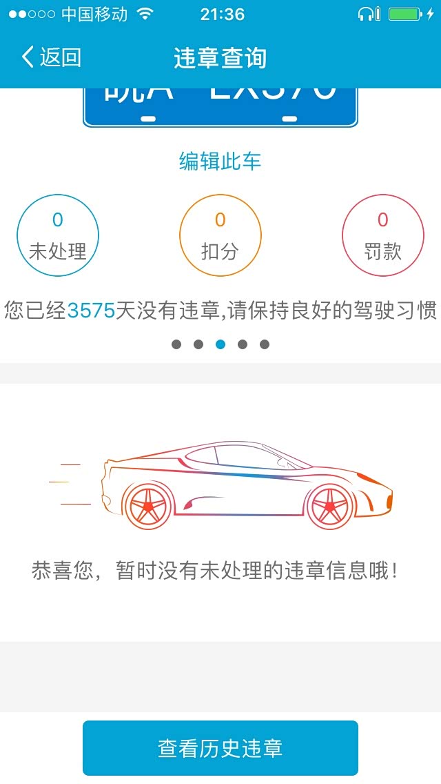 上牌至今共计3575天无一违章。