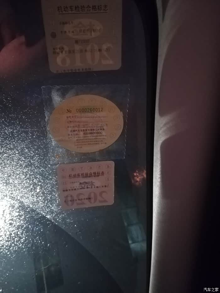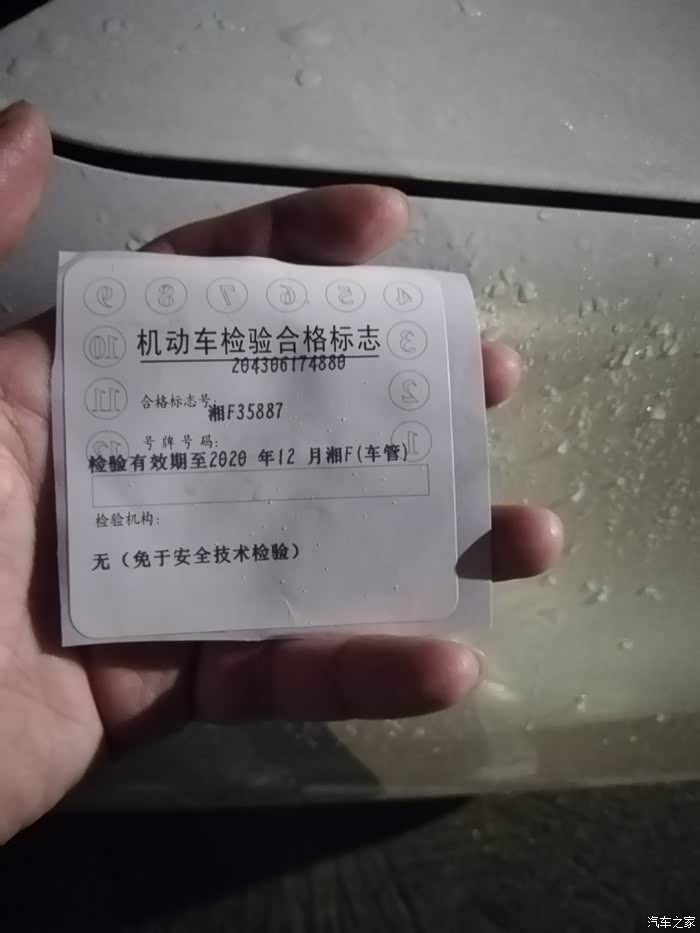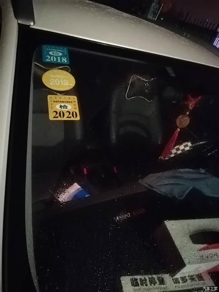 白天拿了快递,就回去工作了,没去贴车上。打算等到下班去贴,结果因为工作出了点情况加班到凌晨三点才下班,下班过来就给小炫贴上了年检标识。