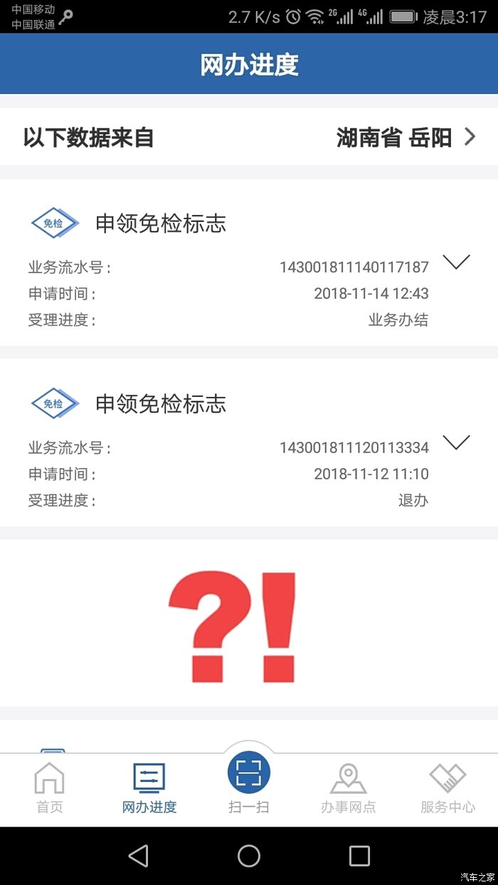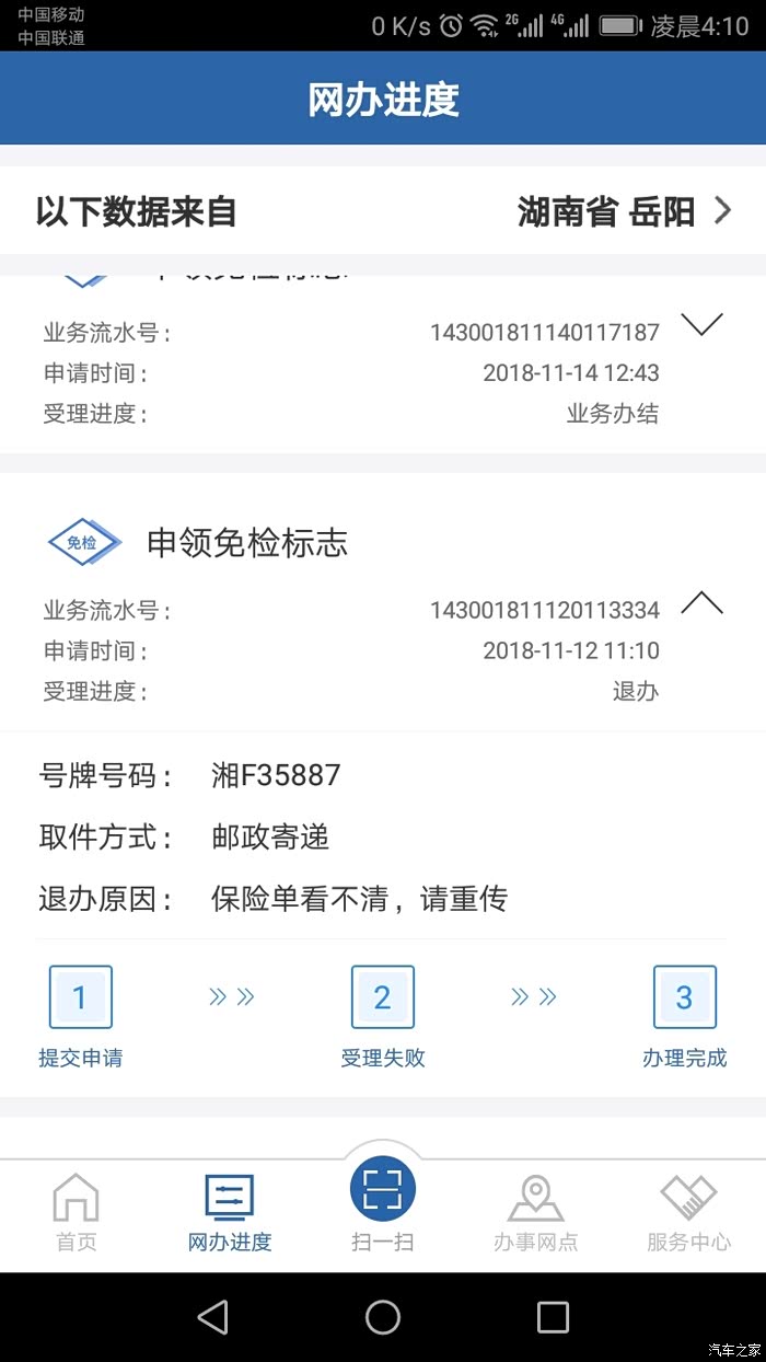 第二折,找了最近的机动车检测站,工作人员说这边不能办理更换年检标识业务。但是工作人员提醒可以手机操作
