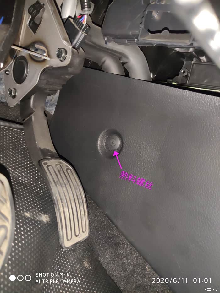 第二方法,消除挂档异响,调节挂档轻盈,油门踏板位置塑料螺丝拆卸,主副驾驶左右各一个