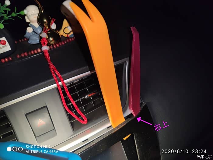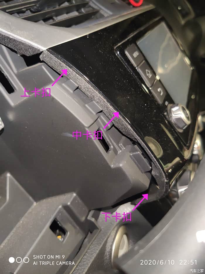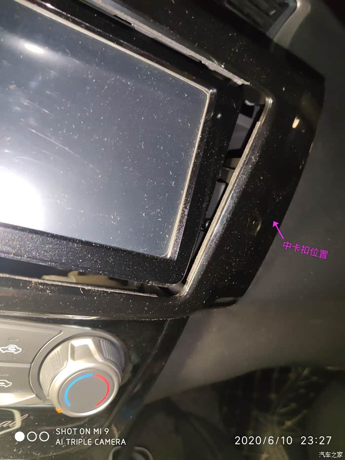 中控屏幕框架左边,上中下卡扣位置,用撬棒撬开安上中下顺序撬开