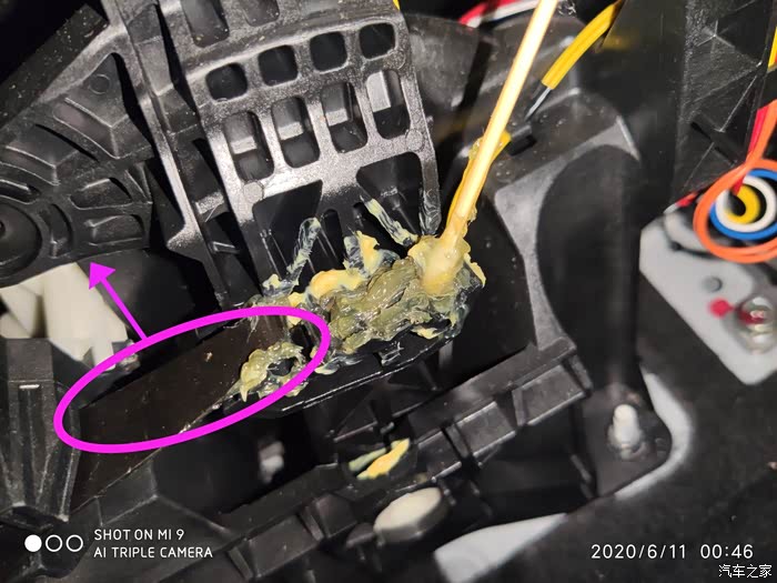 现在可以青春看到挂档定位结构了,异响就来源已定位弹片与凹槽接触位置摩擦的声音,能看到这种黄色的油在周围也还是有摩擦声音,