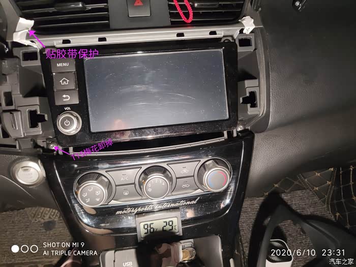 撬掉的样子,慢慢取下来,取下来之前在卡扣位置贴上胶带,看下图,保护面板划伤