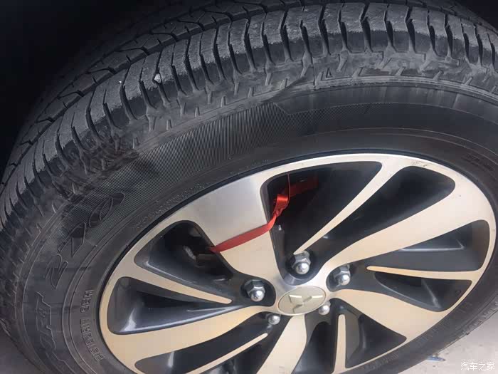 小炫的17寸邓普仑轮胎,好处是纹路很深,抓地防滑能力很强,但是缺点也是因为纹路的原因,经常像这样卡上小石子,哎,还真是有利就有弊啊。