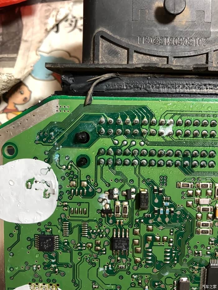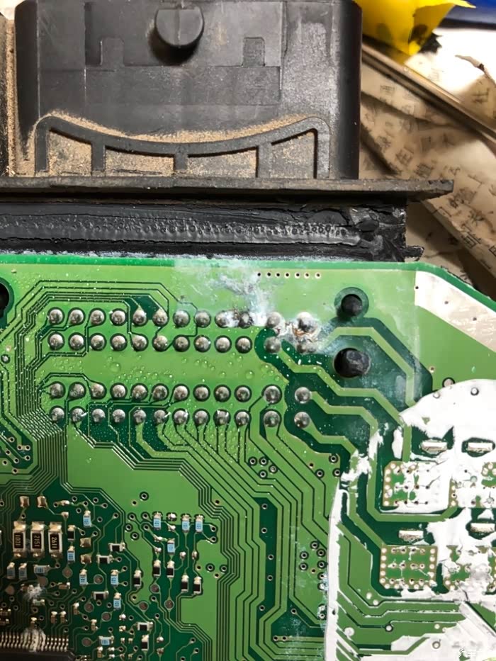 白色一圈圈的就是进水时间长,腐蚀电路版留下的痕迹!这块虎五ECU确实没做好防水这块!想你的行车电脑耐用,就参考我的处理方法,淘宝几十元买个朔料壳没卵用,那只是一个装饰作用!