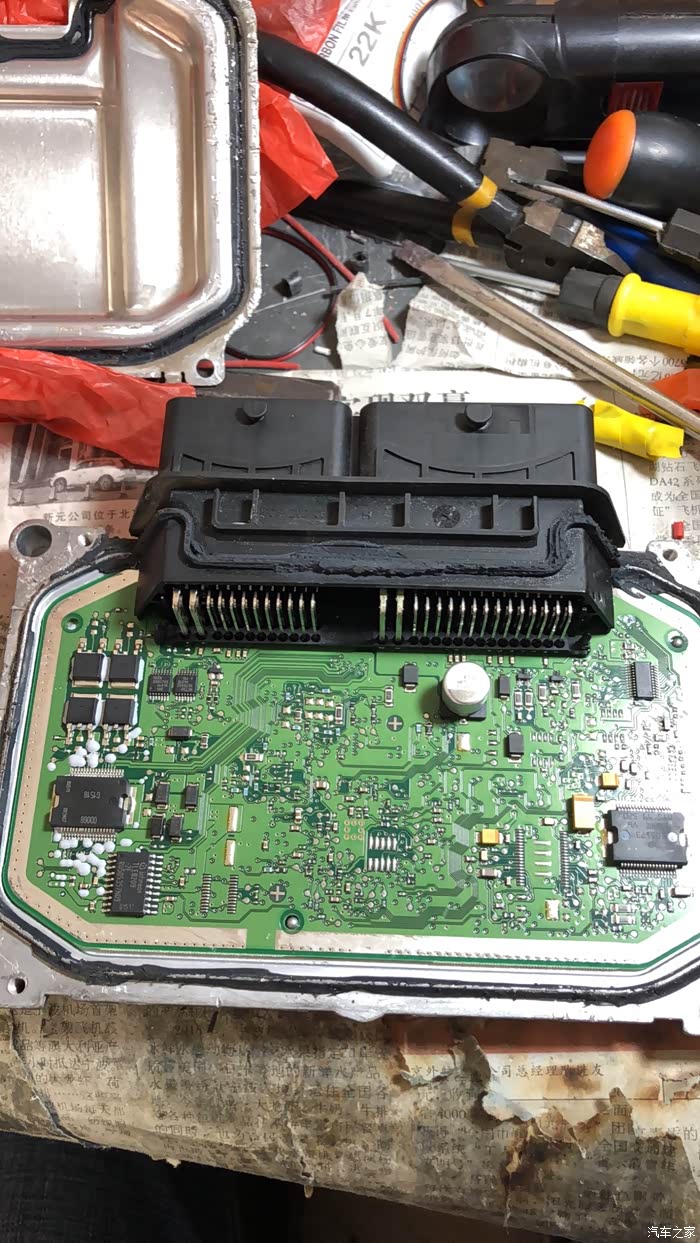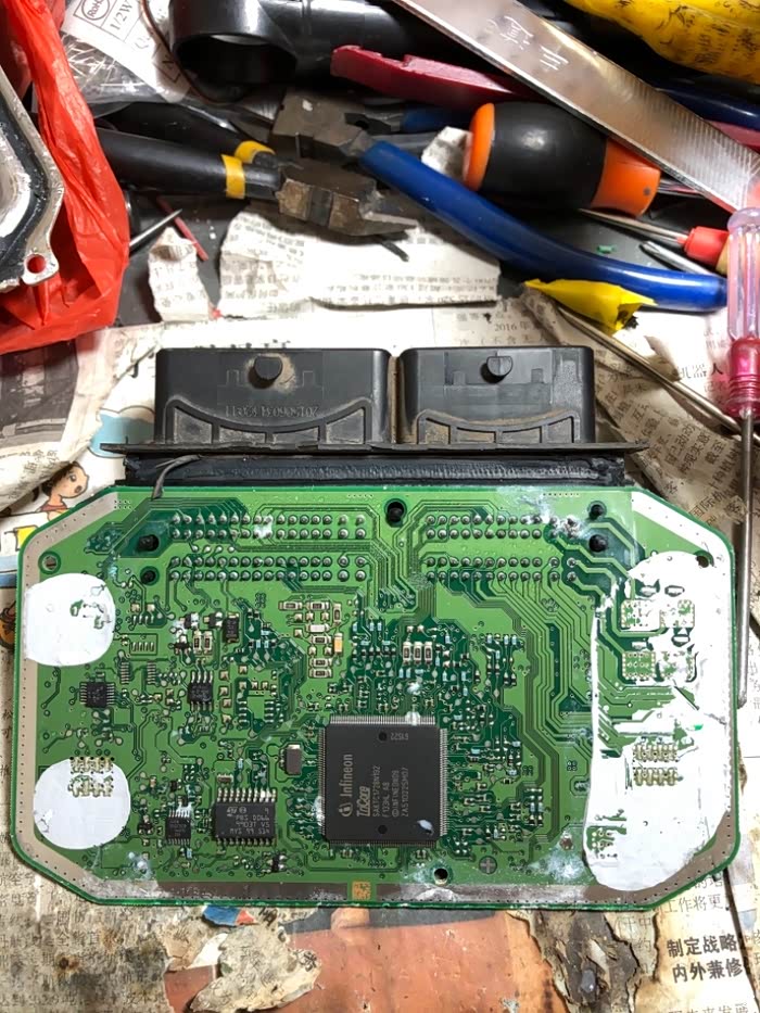 修好了开始把我原车的防盗数据写进这个ECU版,这样我的车就可以用两块ECU了,修改的就可以在我车上使用了!之前修好直接插上去通电报钥匙故障,着不了车,之后把我原车防盗数据克隆过来这主板就可以了!