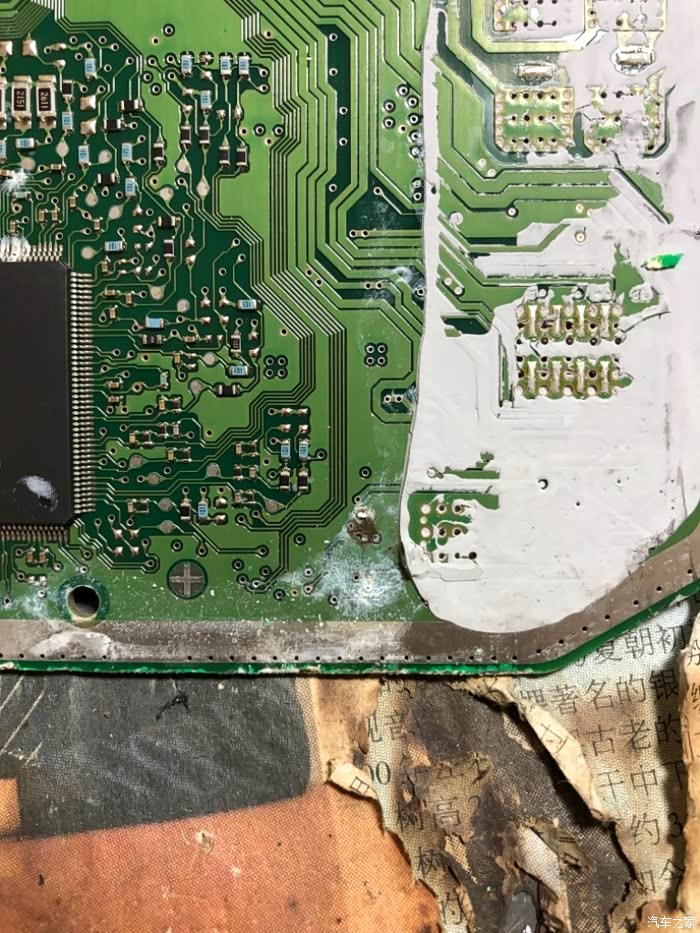 卖力一番拆开了ECU,可以看到里面有进水的痕迹!