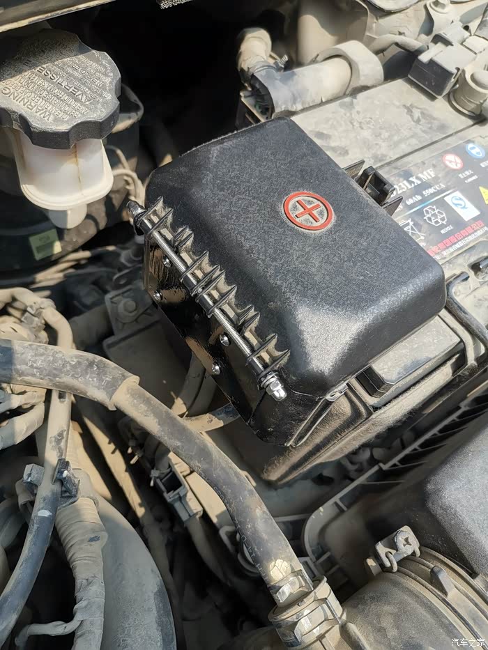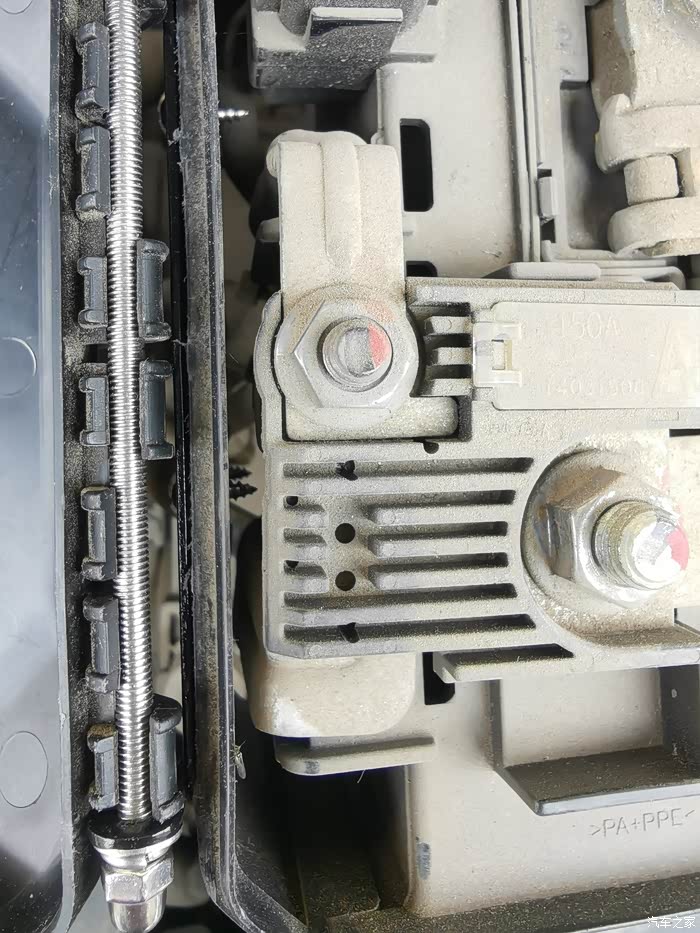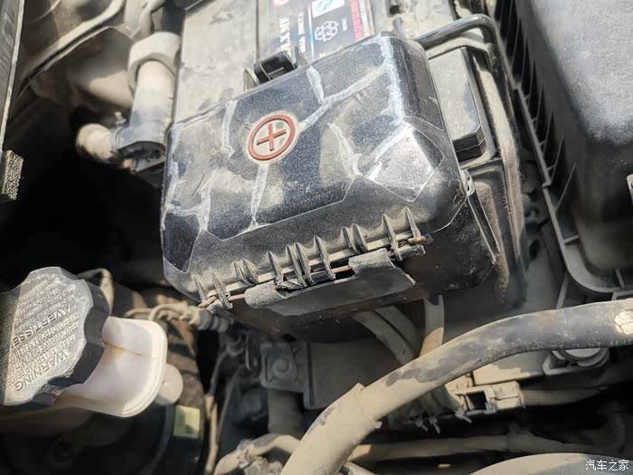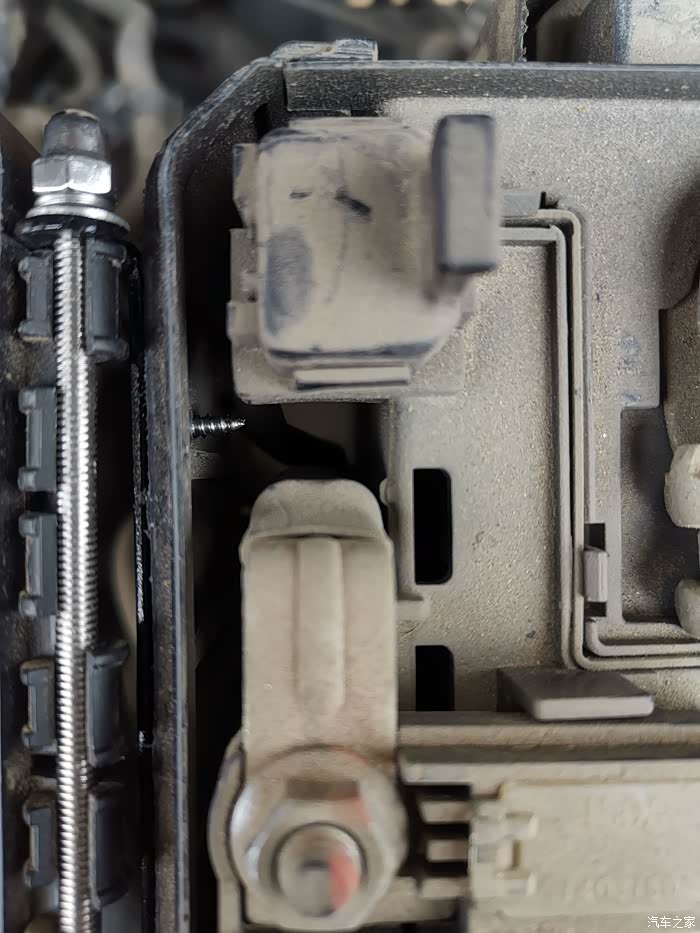 话说在某年某月的某一天,突然发现蓄电池正极盖居然是坏的!买来从来没动过这地呀!我买的这车是展车,在4S展厅他们会接电,肯定要拆这里,情形应该是这样,脑补:某小工接完线忘记盖上,机盖一扣,这荷叶就完蛋了,坏了没有单配的要连同大线一起换很贵的,打死也不能承认,悄悄的放回原位不要告诉车主,没人能发现!当然这只是假想,我也没看见,自己修修吧!