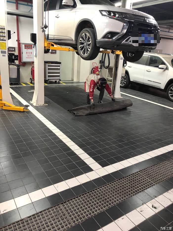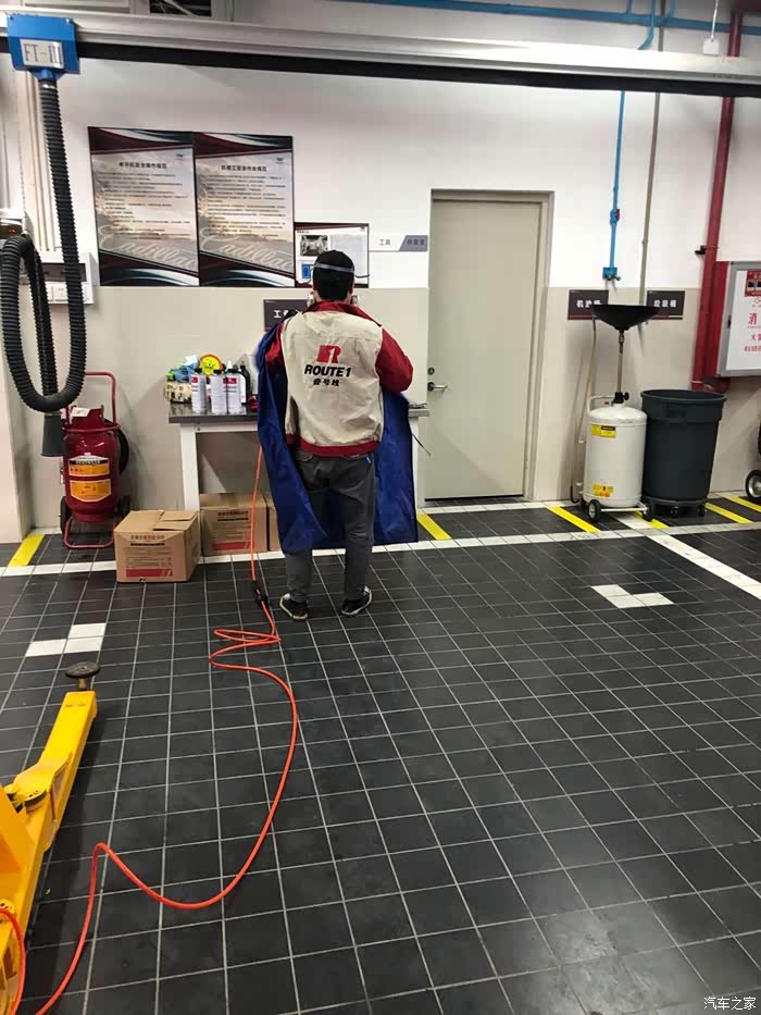 铺上一层地垫,防止喷漆掉落的车漆...时刻保护地面的干净,这家4S店的环境卫生还是非常到位的..