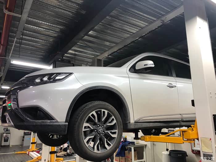 整部车慢慢的升起,感觉广汽三菱欧蓝德此时的样子非常的彪悍,比在地面上的感觉还要凶猛.....升起之后的轮胎更加的大了看起来.