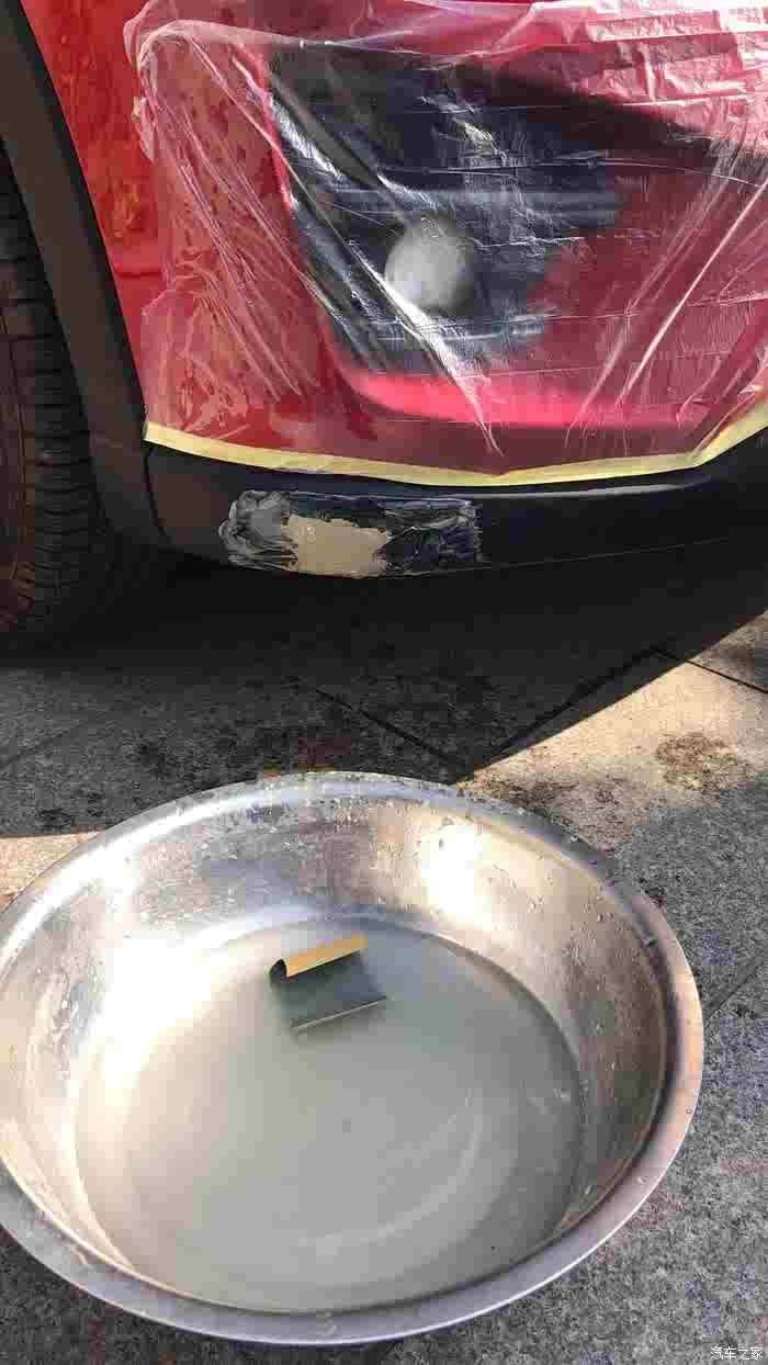 前面保险缸修复,不小心上了路牙石,刮花了,自己x宝25买的专用漆,粘土,自己修复……