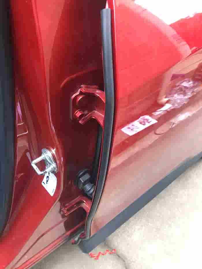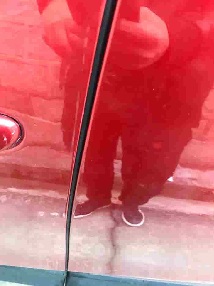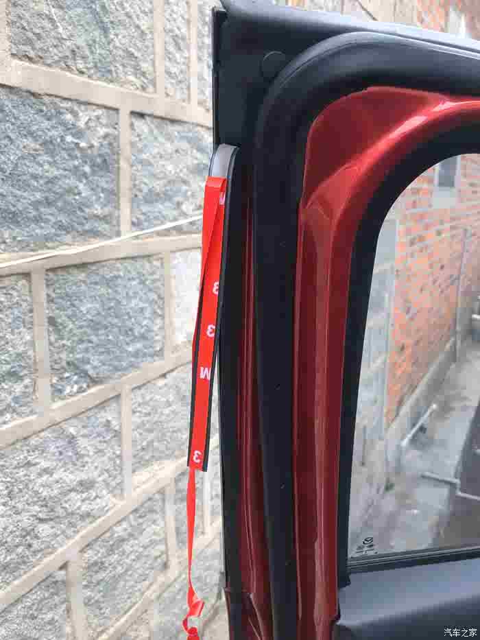车门前面的a柱,比较不好弄,先把隔音条从上到下顺下去,慢慢粘,