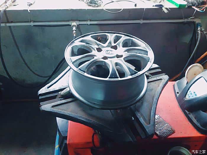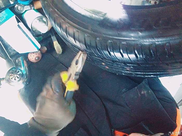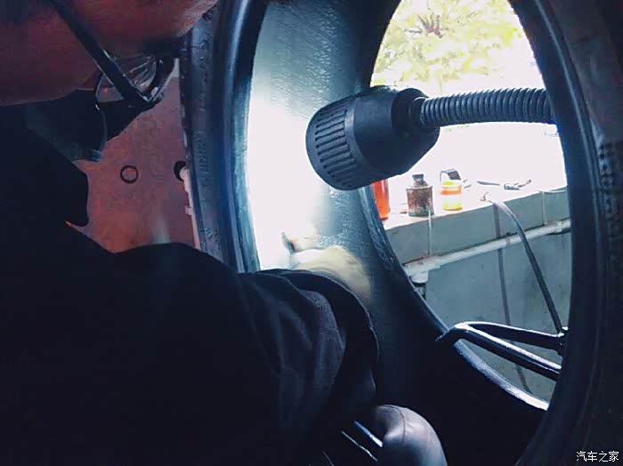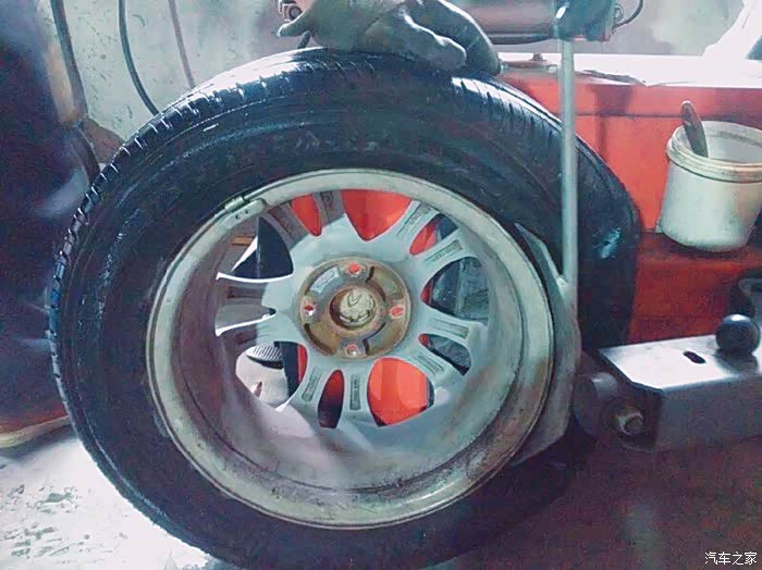 冲完气就赶紧开车去寻找补胎的门市,不错,雨过天晴总见彩虹,五分钟不到,就找到了补胎的地方,和师傅说明情况后,师傅让我把车直接开进工作间内,因为外边又开始下雨了,师傅检查后说,你这长安车轮胎真好,胎纹这么明了,一看就是好胎……哈哈,只见师傅开始用千斤顶将车顶起,拆卸螺丝,手法极快,一看就是老司机,哈哈,话不多说,看下图,因为师傅太快了,有些细节没有用照片记录,请谅解