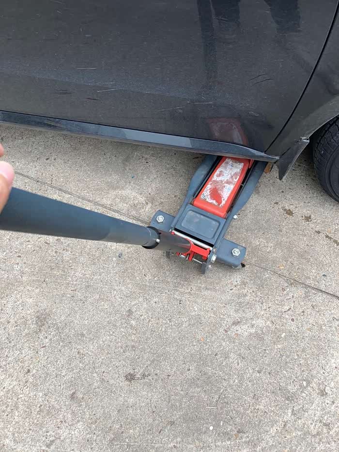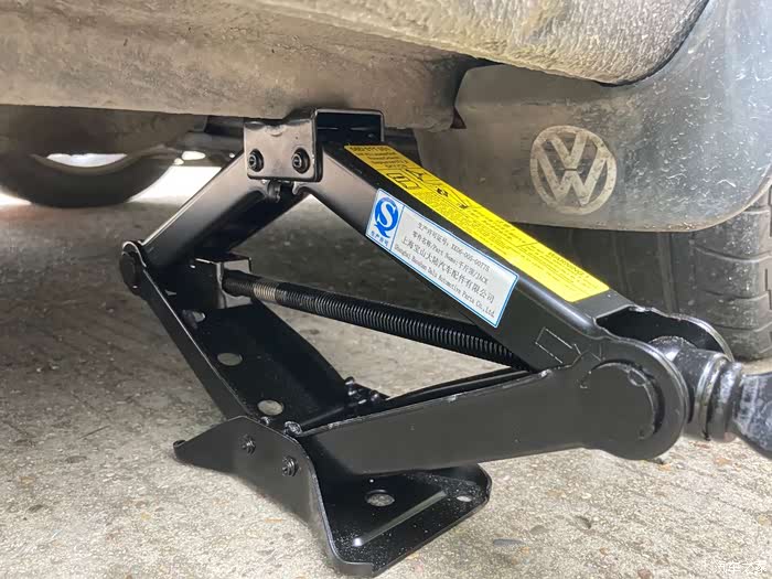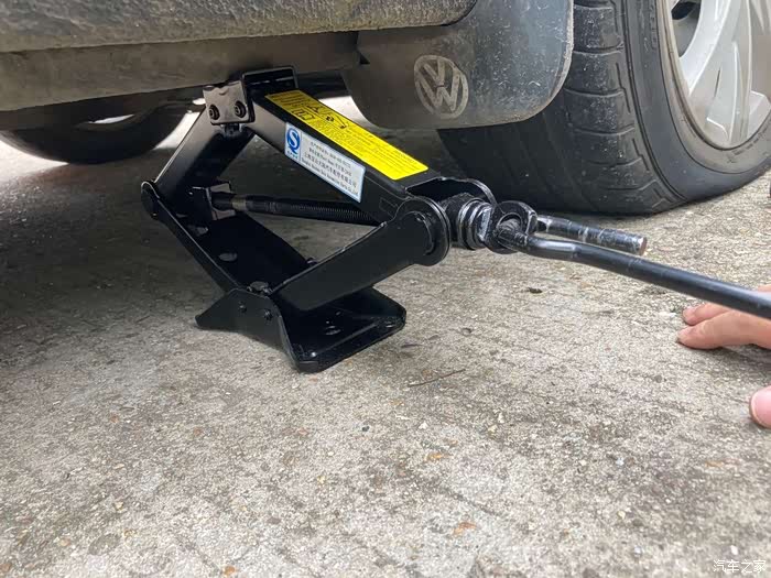 在确保每一个螺丝都有松动的时候,可以把千斤顶升起来了,离地高度比一个正常轮胎能够安装的高度,