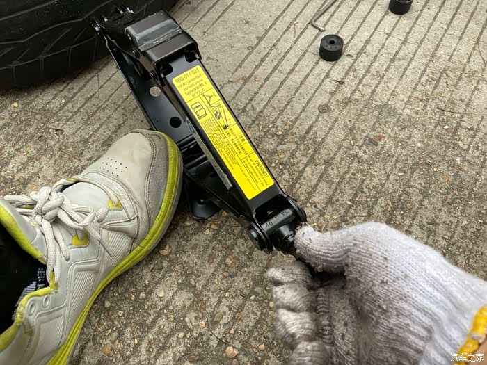 小师傅也不见外,拧松了螺丝就把钢管还给我,剩下来的让我自己来,接过钢管,插回千斤顶上,