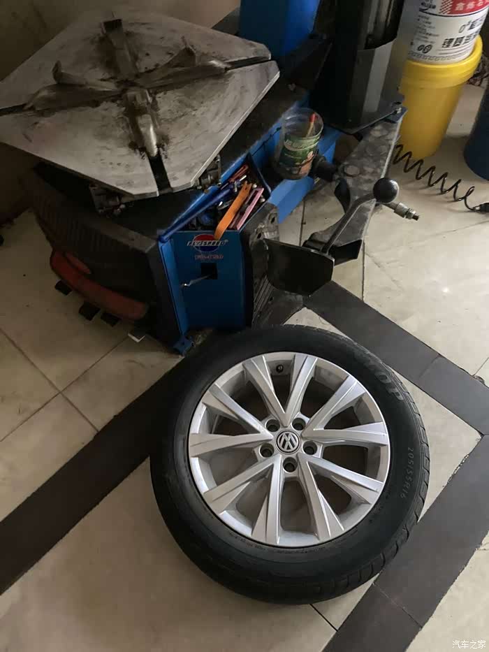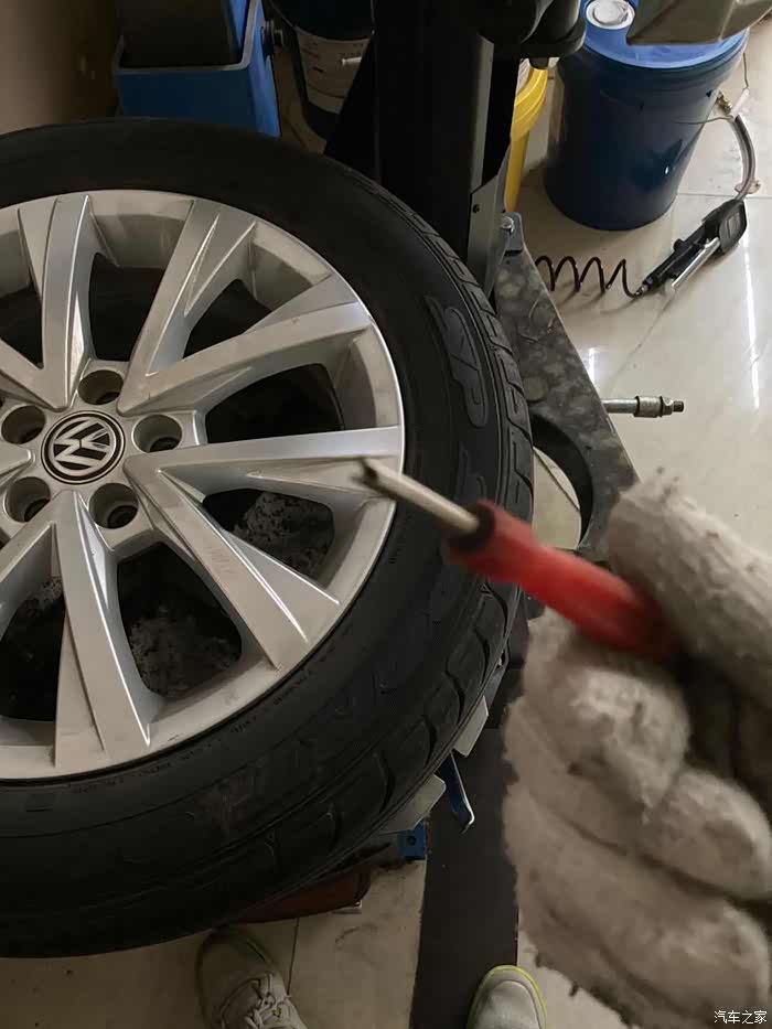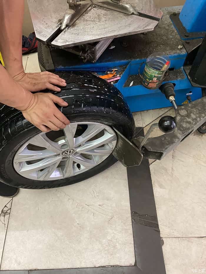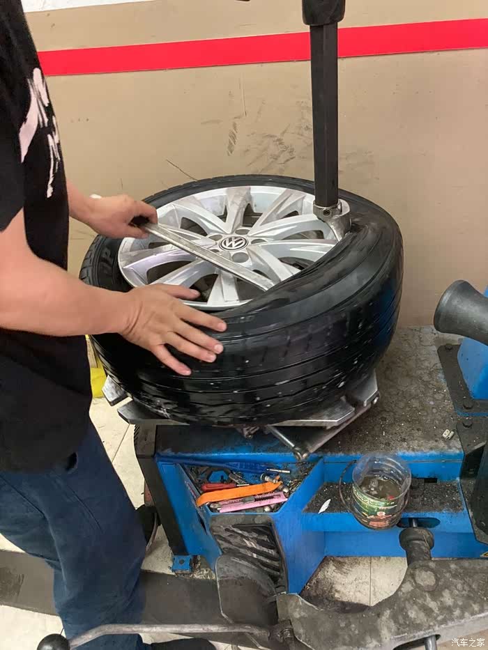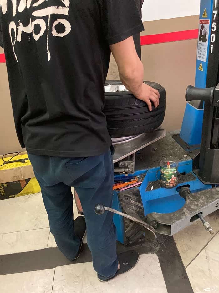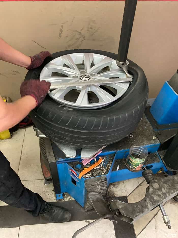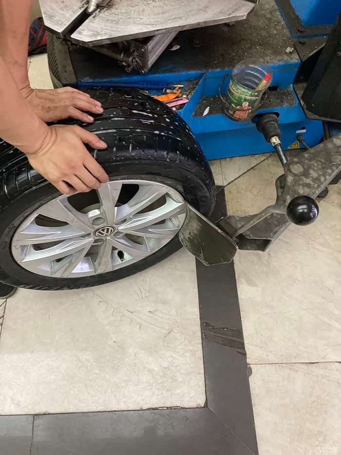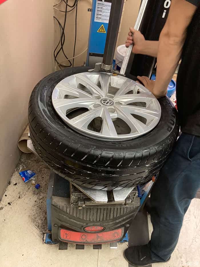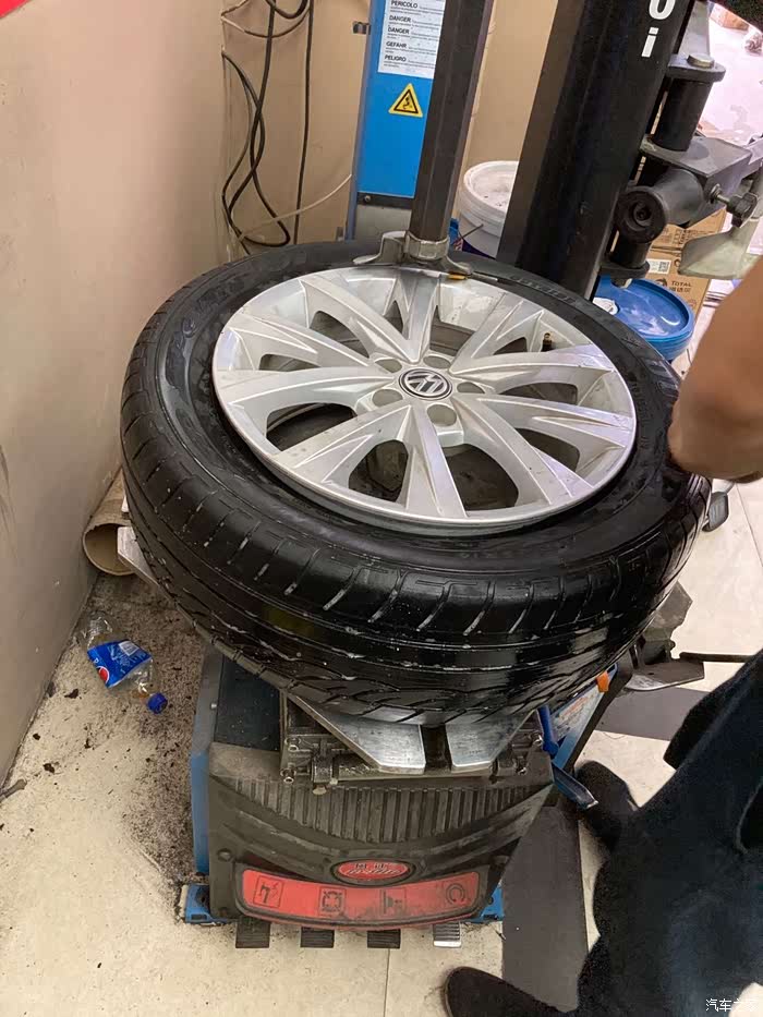 师傅早就安装完轮胎,在给轮胎打动平衡了,(因为我在拆备胎及清理备胎槽,所以轮胎安装过程中的照片一张都没有)