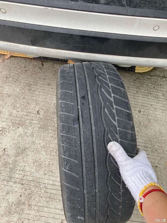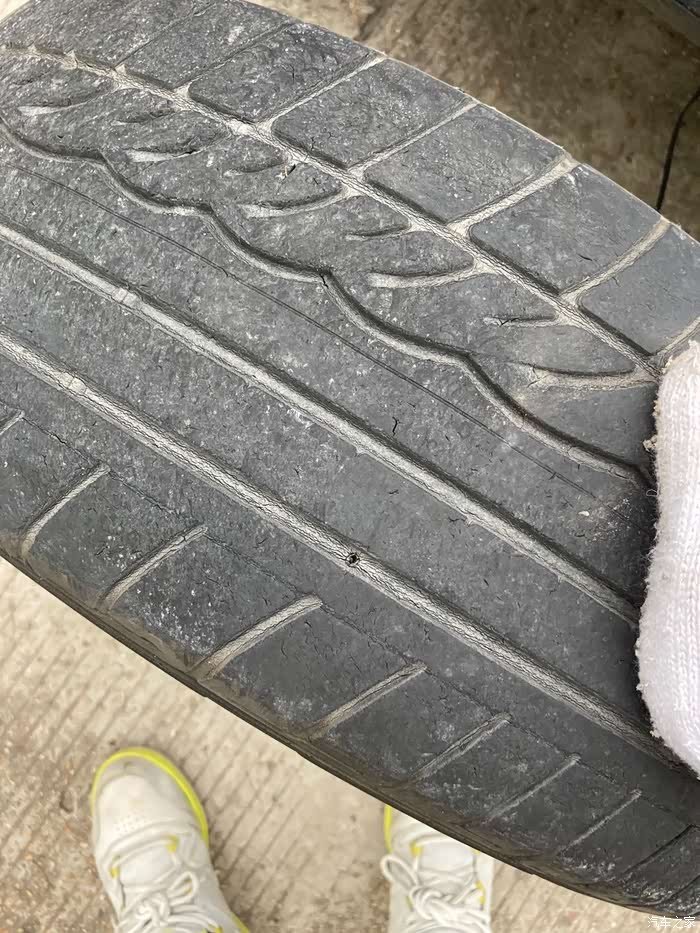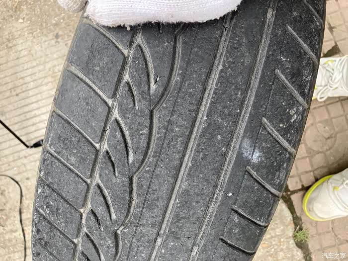 额。这轮胎有点磨损厉害哎。五年七万公里了,