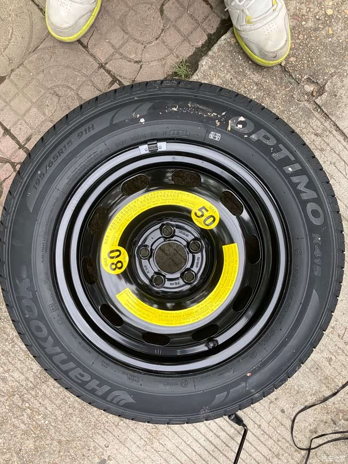 我的小黑朗备胎是来自韩泰的傲特马系列,型号为傲特马K415 195/65R15 91H,为非全尺寸备胎,产自于15年第49周,