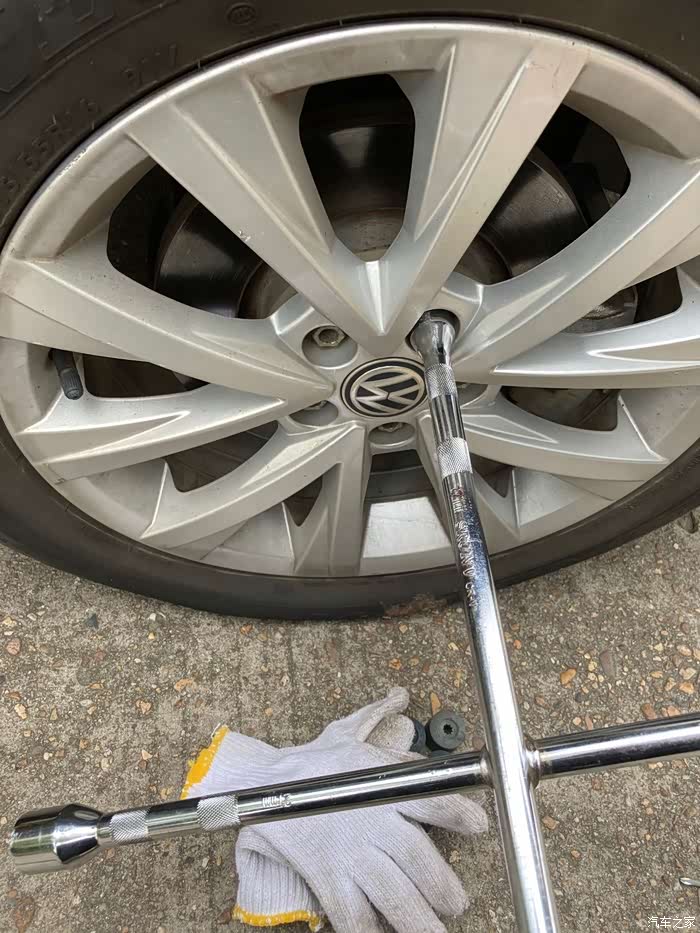 原本我自己拆备胎的,结果因为那天装备胎使出了吃奶的劲,导致我自己用十字扳手拆不动螺丝,在我的叫唤声中,小师傅过来从千斤顶上取下半截钢管,插入十字扳手,使得十字扳手的力臂增长,增加力矩,从而省力,非常轻松的把螺丝拧松了,