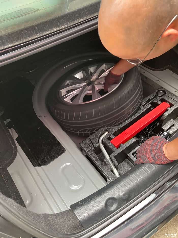 师傅看我在清理后备箱就帮我把轮胎装回去了,(不然按照惯例,这装轮胎是要我自己来的。)