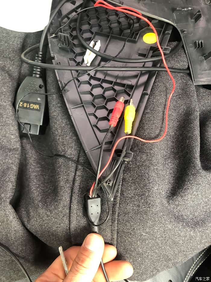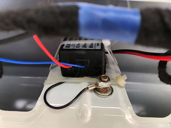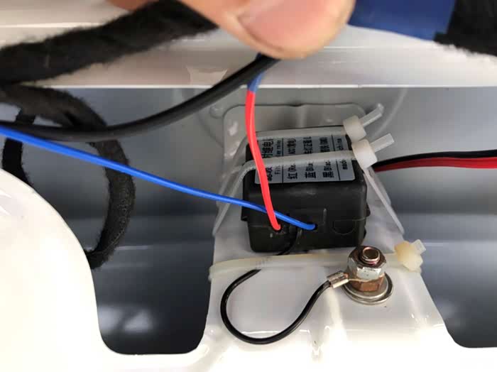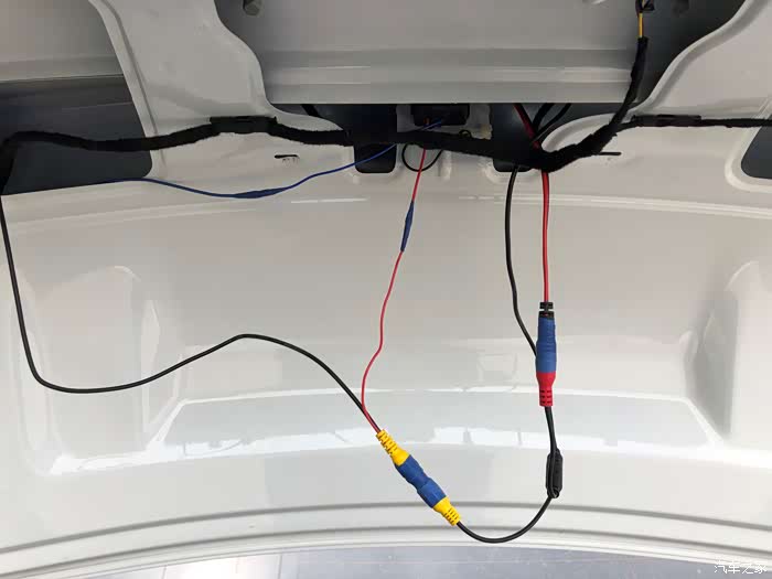 由于强迫症的原因,不想在这里接线,再就是发现当时安装时连接倒车灯的线路有点短(也怀疑与这个有关系,时间长了线与后备箱盖子摩擦才导致断的)决定明天买一根线换上。顺着原先的线路把新的线路布好之后,连接187B把机器