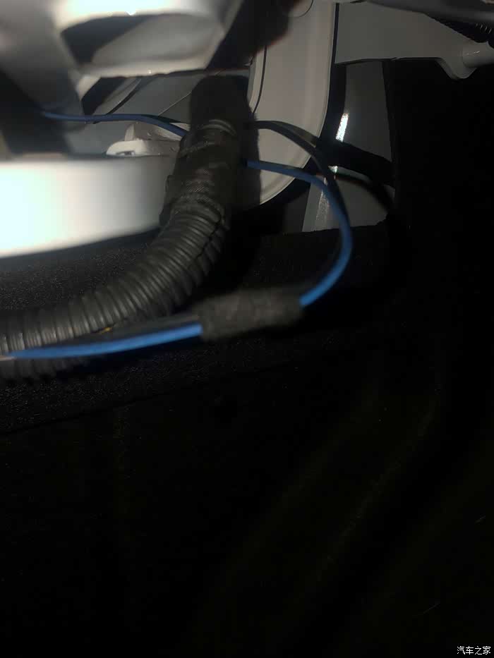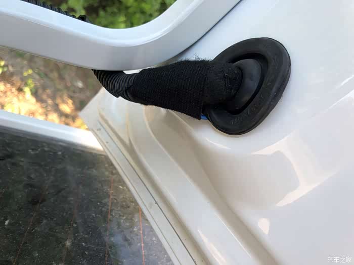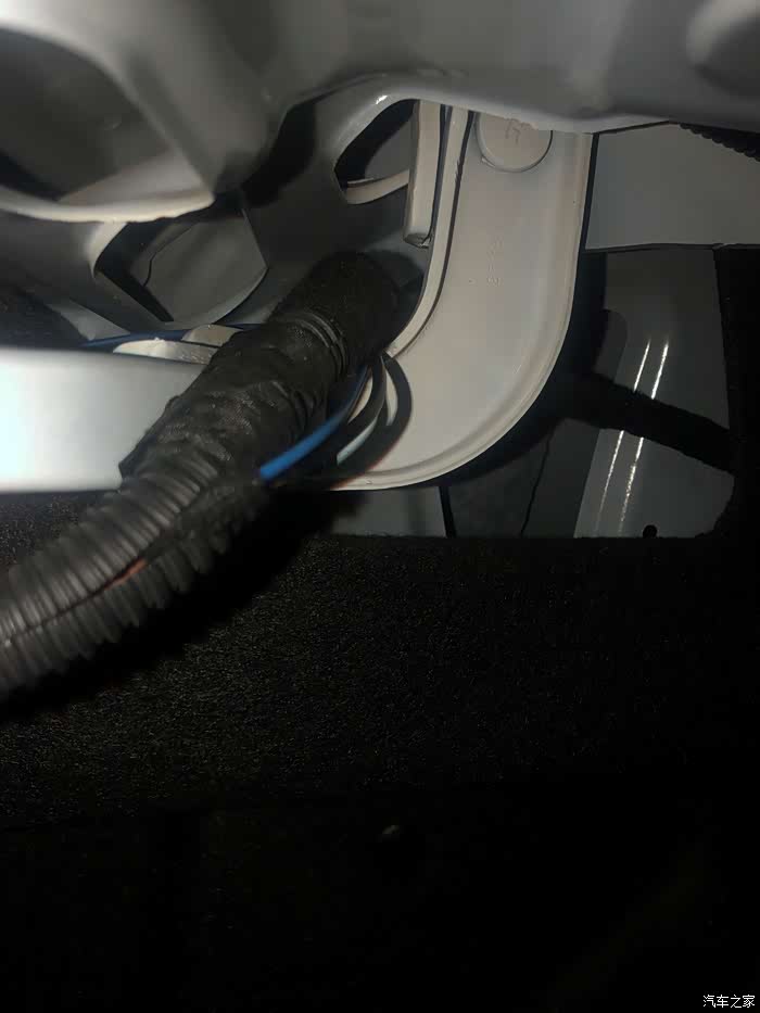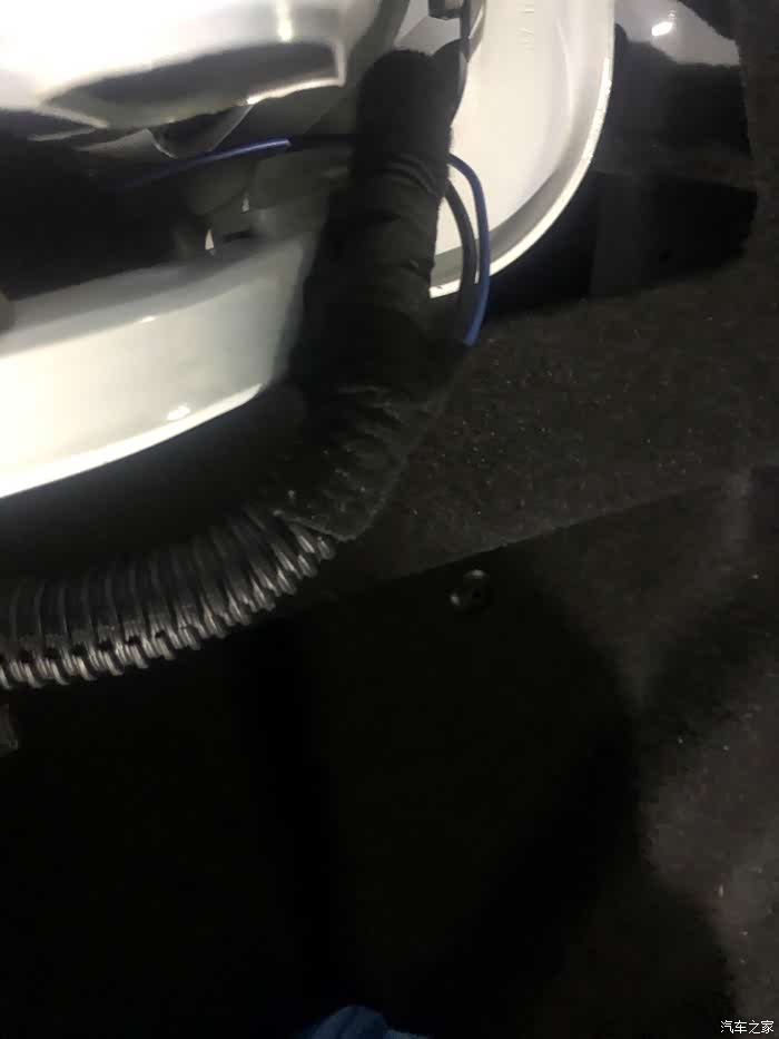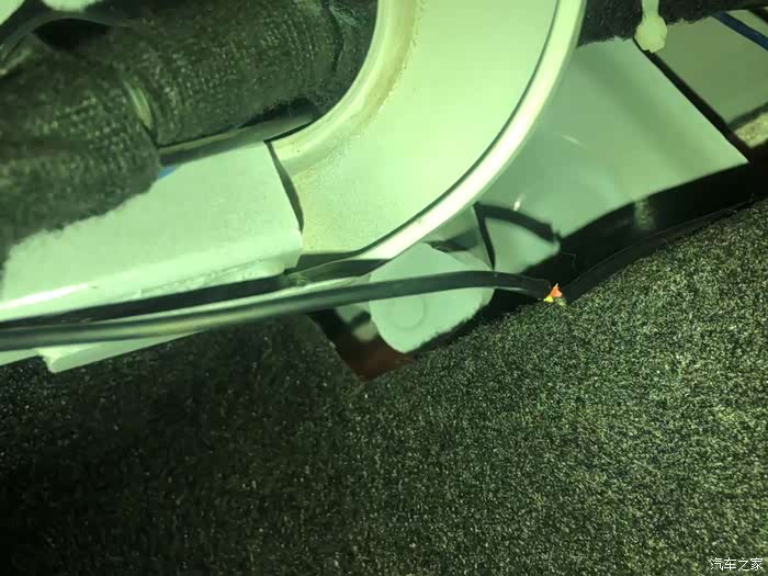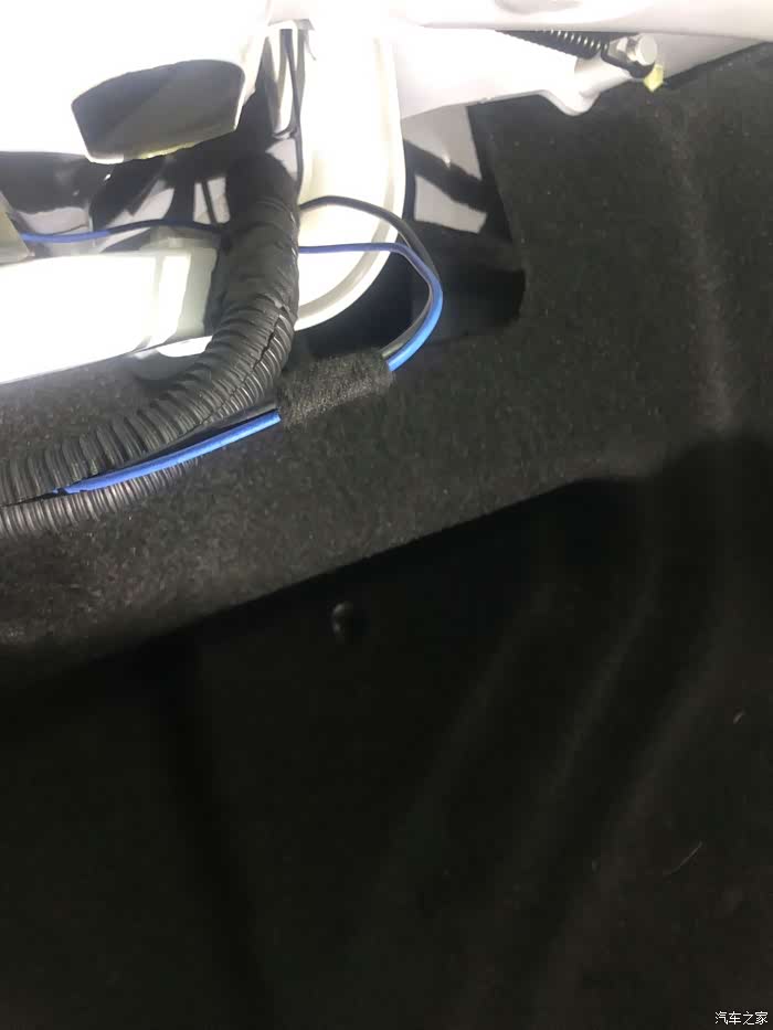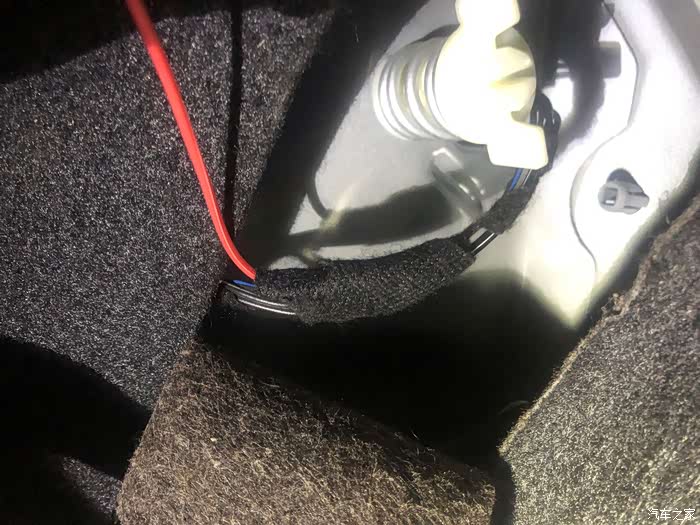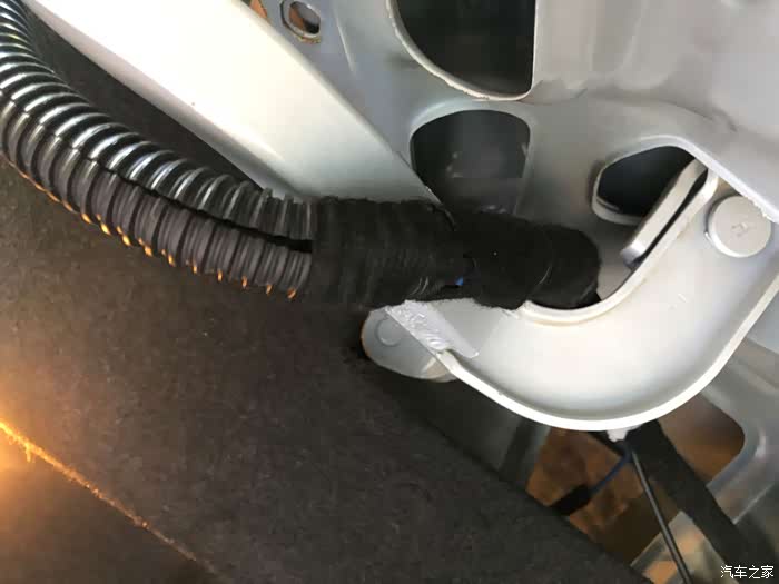 随机顺着线路一点一点的找,刚找到后备箱里面就发现问题了,竟然由于当时安装时线路没有固定,可能由于平时装载东西的时候把线卡坏了。