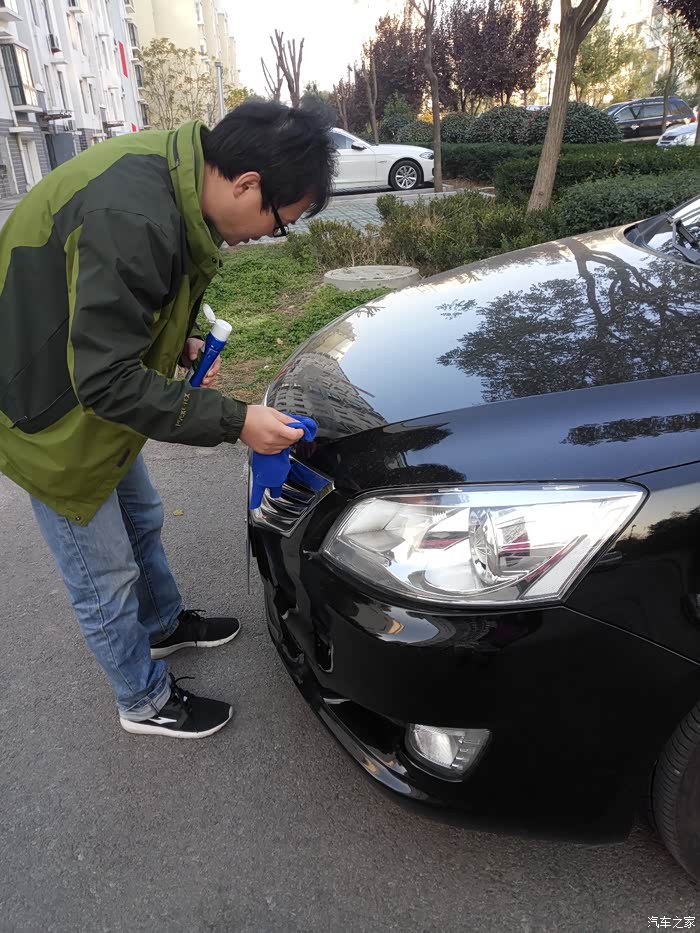 基本步骤就是,先擦干净划痕部位。然后抹上蜡反复的搓,直到划痕减轻,有的划痕很难完全清除掉。所以要反复的处理。我弄了有二十分钟左右。打扫卫生的大姐都过来看是什么原因。我就告诉他们是别人刮得,都是很无奈。