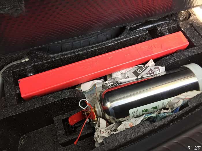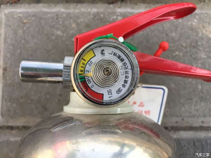 既然灭火器出镜了,我就简单介绍一下。车上备一个灭火器,是以防万一,也可路见相助。备有灭火器的车友,也要时常检查一下,灭火器的有效期是3年,顶部的压力表里有红、绿、黄3色区,指针位于中部的绿色区域为合格,位于红、黄区域表示充装不足和超充装,都是不合格的。