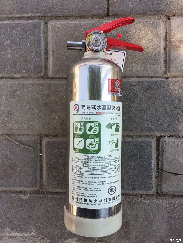 原以为年检需要车里备上灭火器的,所以拿出来检查一下,其实检测中才知道我们这里不需要,不知道其他地方是否需要。