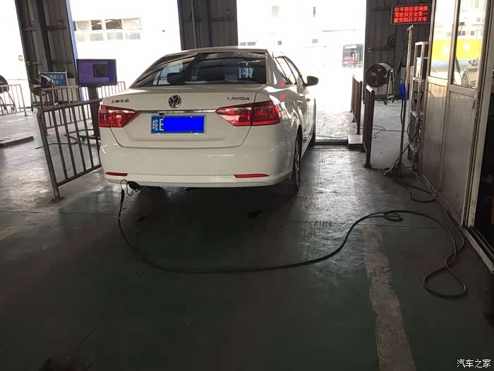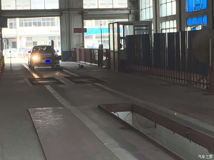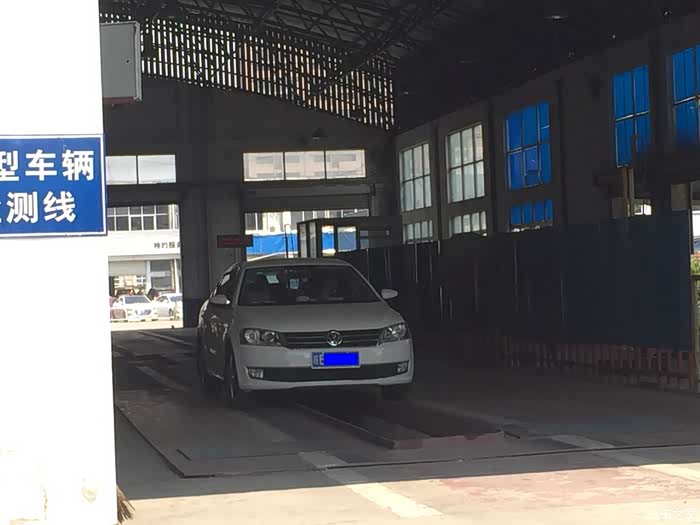 很想跟车进入现场一探究竟,可是不允许。站在门外看着老狼被工作人员开上检测线,门口是第一个项目“检测车辆尾气排放”,这是许多车友最担心的环节,我赶紧拍了一张照片,老狼检测尾气排放前后大概一分多钟,就过了。
