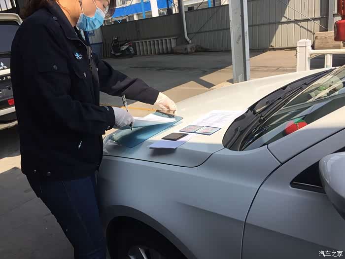 经过20分钟左右的排队等待,轮到我了。首先是工作人员进行车辆“外检”,工作人员查验驾驶证、行驶证、保险单后,由我坐进驾驶室,点火,变换车灯,查验所有灯光完好。