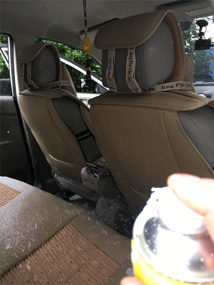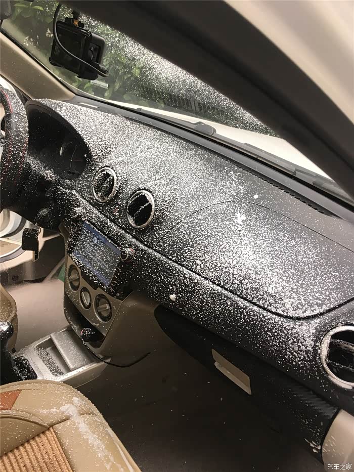 哈哈车内成了遍地雪花,大概5分钟以后用干净的布擦擦就好了,够轻松的。