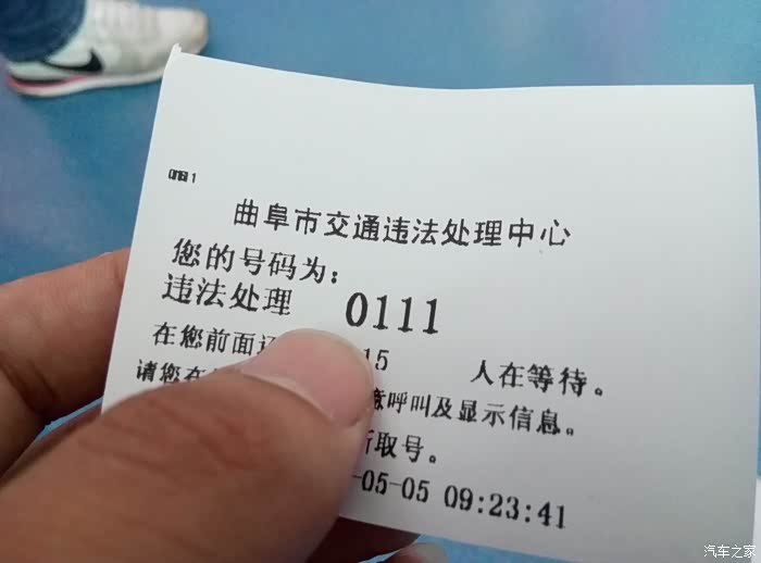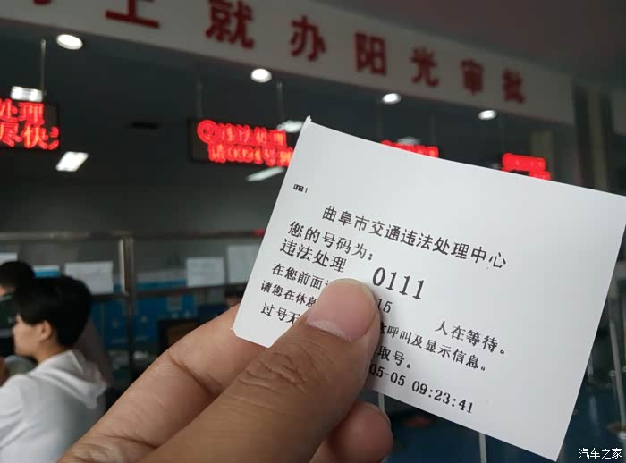 悦翔是我的第一辆汽车,时间总是过得很快,不知不觉6年多了,虽然很能跑,空间 动力已经不能够满足日常使用了。所以家里有来了一位新家人 长安CS75 悦翔的家族大哥。跟悦翔一样是一款成功的车型,常在河边走,哪有不湿鞋。今日接到短信说有一个违章,要去处理一下。今日上午忙完手头的事情出门了,吃过早餐第一站就是 中国曲阜会展中心,违章处理中心,短信提示一个违章 逆行200罚款2分。走到一查不要紧,两个违章还有一个闯红灯,晕菜了。交通规则一定要遵守,谨慎驾驶要细心,慢一点不要紧,违章了400多元没有了。400多能买多少汽油能跑多少公里! 我是记住了,以后到路口一定要慢,快那一秒没用。好了上图欣赏吧,给大家欣赏我教罚款的前过程 泪奔中·~·~