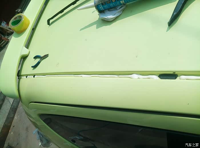 喷完等晾干,把所有东西安装好。做了淋水不漏了,现在就看下雨时开车会不会有水在渗进来。好了完工!