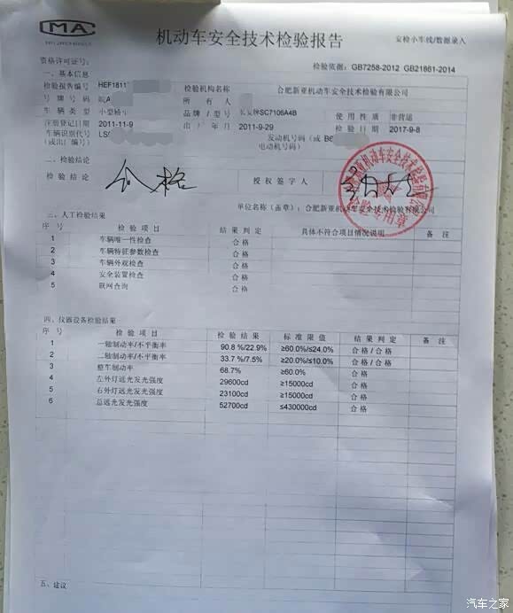 报告出来了,时间匆匆忙忙,只拍到了检测报告第一张表,只有制动和灯光的报告。尾气报告忘记拍了,但是肯定是合格。小奔的手刹还是偏弱了点,但是也在标准范围内,让我惊喜了一下。摸摸口袋里准备找黄牛的软妹币,心中不由得窃喜起来。