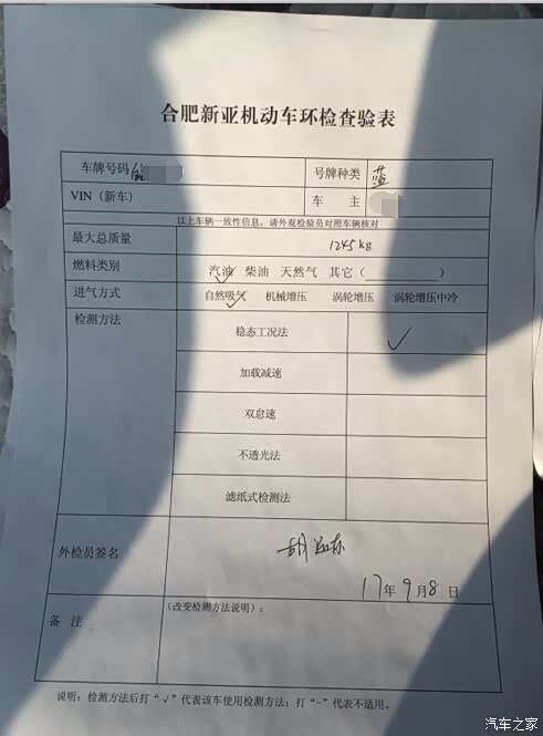 等了5分钟,工作人员把数据录好了,然后把行驶证上备注添加了。就给了我这个2018“检”。大功告成。