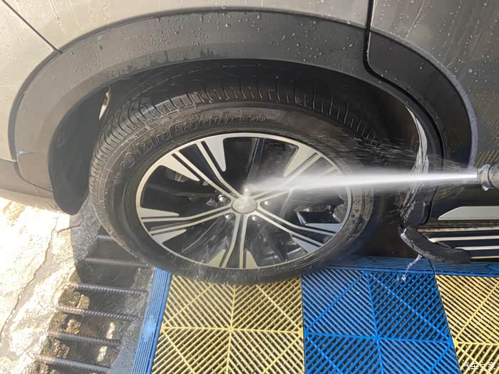 轮胎的那些小石子 也尽可能冲冲掉。养护轮胎