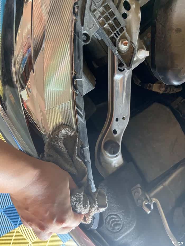 然后用拧干的毛巾去擦下发动机里的尘土 比较干净