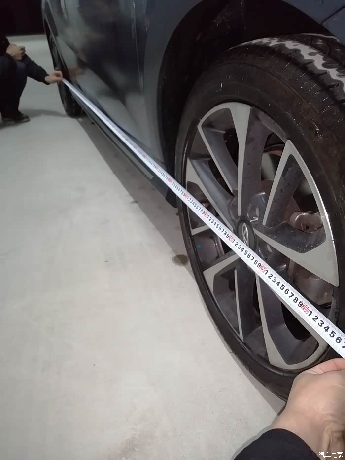 然后找个平路跑一段路,把车子停好,再测量一下尺寸。