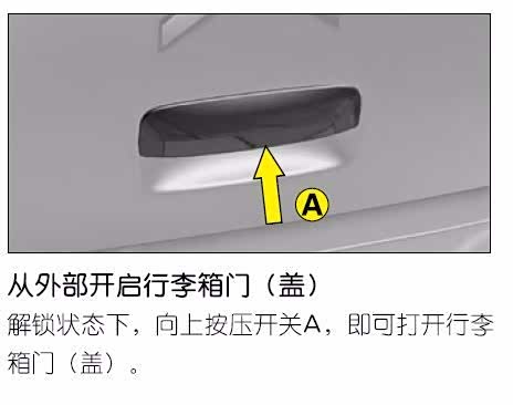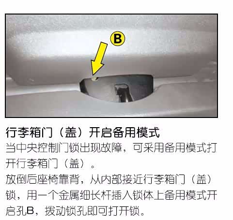 后备箱盖打不开了,这是从说明书上找的怎样采用备用模式打开后备箱行李盖。