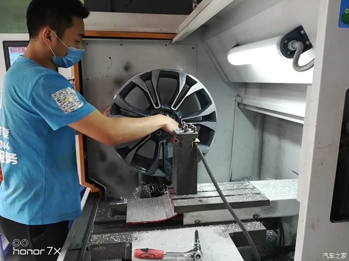 今从百度搜到本地专业轮毂修复店,我们这种拉丝轮毂,修复难度大么?老板一口答应。马上出发,修轮毂去…
