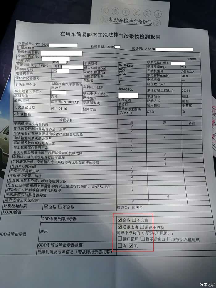 昨天去审车,原想昨天晚上发帖子的,可是又要对图片进行处理,家里还有一些事情要处理,弄着弄着就挺晚了,所以今天才发帖,首先告诉大家一个好消息,那就是昨天已经顺利拿到2021年年检标志了,原来担心的OBD也没有什么问题,环检有点小插曲,也顺利解决了。现在就把第一次审车的经过及心得简要写一下,也好给大家提供一些经验和参考吧。