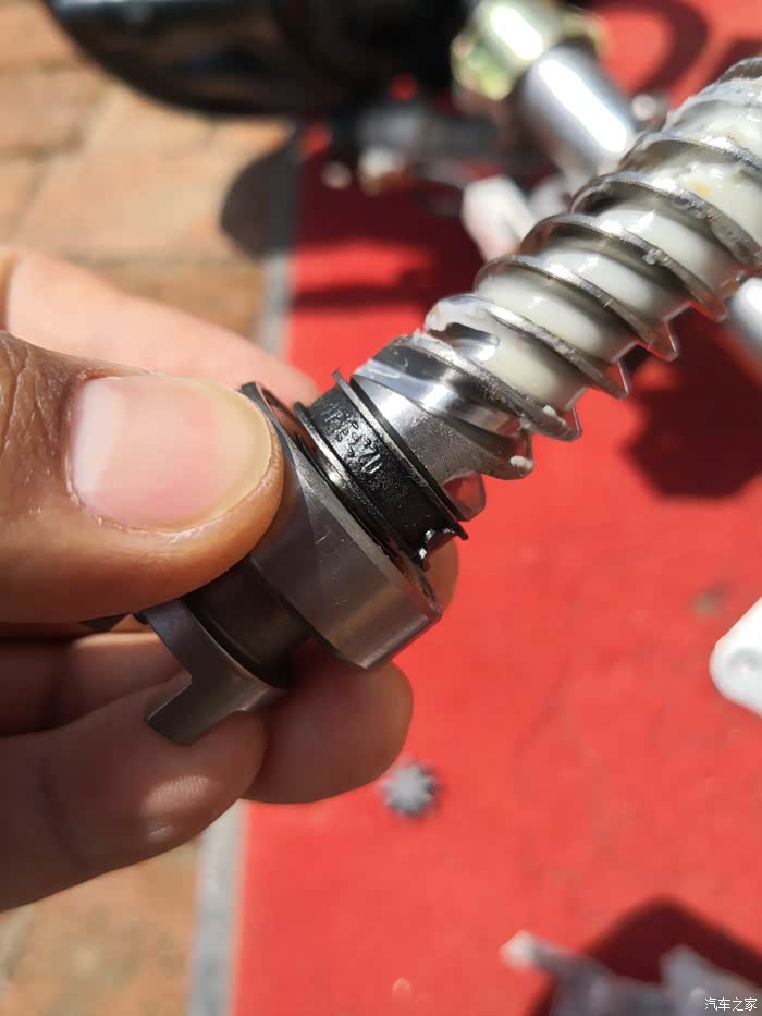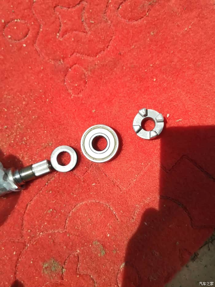 驱动轴下面也有一个相同的垫子,记得一定要涂油。驱动轴的齿上也多涂油。驱动轴怎么拆在安装好,上车实验,最后试车一圈,不响了,也不卡顿的,我换了一个轴承,驱动轴上有两个,我没买那么多,就一个,所以没换,最好都换了。有想动手的车友可以加我微。287715465.一起进步成长