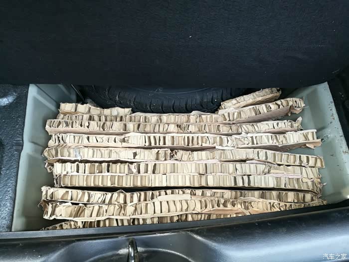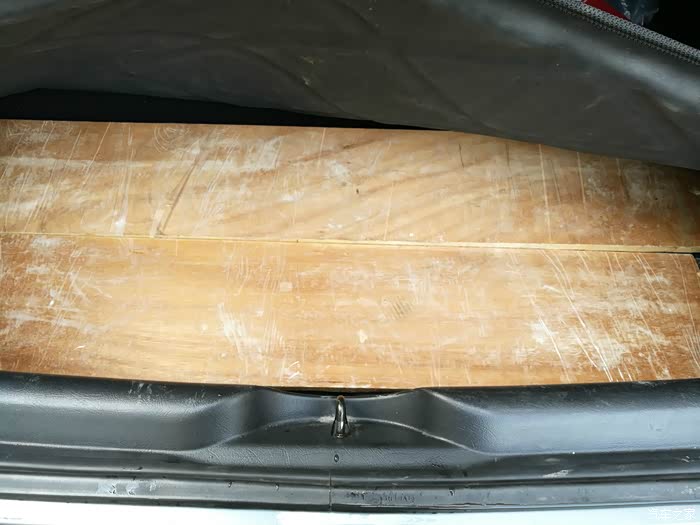 为了能顺利通过年检,特意稍微整理一下后备箱:在后备轮胎位置隔放2个木板,以方便载货。