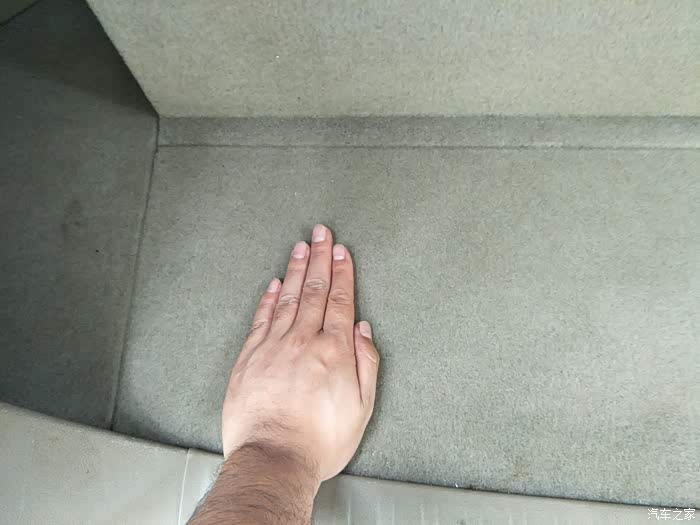 其实第三排打开后,放些常规物品还是很够用的,大概有一掌半的距离!这是一掌。
