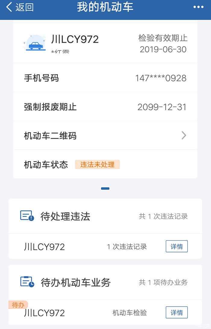 这张就是在某平台我绑定的逸动车违章信息了,最下面还有一个机动车检验提示,的确我的逸动六年了,也该去检验了